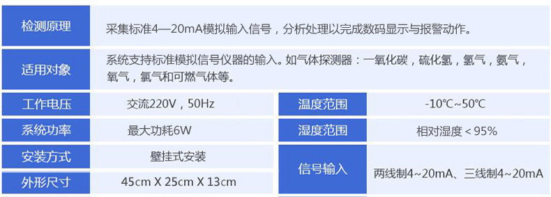 JD-GD可燃?xì)怏w檢測報(bào)警器(可燃?xì)怏w報(bào)警控制器)是本公司研制的一款可以同時(shí)處理多組4—20mA信號類型的儀器。它具有穩(wěn)定性好,準(zhǔn)確度高和參數(shù)智能化設(shè)置的特點(diǎn),外接控制端口豐富,用戶可以自由選擇掛接傳感器的種類和接入端口,并通過簡單設(shè)置即可進(jìn)行現(xiàn)場檢測與報(bào)警。系統(tǒng)主要應(yīng)用于需要檢測可燃?xì)怏w的場合中,顯示待檢氣體的數(shù)值指標(biāo)量,當(dāng)現(xiàn)場的某種待檢氣體的指標(biāo)不符合所設(shè)置的標(biāo)準(zhǔn)時(shí),系統(tǒng)會自動(dòng)進(jìn)行一系列報(bào)警動(dòng)作,如報(bào)警,排風(fēng),跳閘等(根據(jù)用戶的不同設(shè)置而不同)。