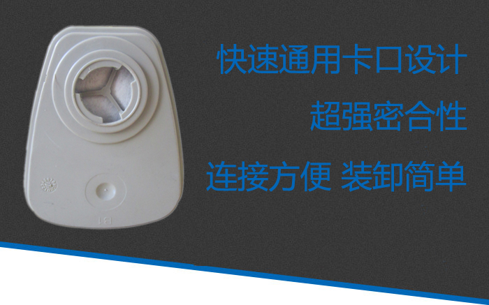 二 金盾B型1號濾毒盒采用快速通用卡口設(shè)計,連接方便,裝卸簡單;90度旋轉(zhuǎn)卡口設(shè)計,密合性超強(qiáng)。
