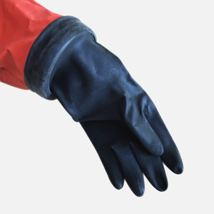 4.配備專業(yè)防化手套 采用進口耐酸堿PU + 天然橡膠材質(zhì) 柔軟彈性 佩戴舒適 植絨內(nèi)襯親膚易脫戴 可水洗 進口PU加樹脂涂層 耐磨隔熱防酸堿 摩擦防滑設計 便于抓取