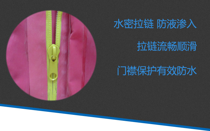 1. 高密閉性水密拉鏈 門襟保護 尼龍搭扣粘連 提供高端雙層防護 確保化學液體不滲透 拉鏈流暢順滑 手感舒適