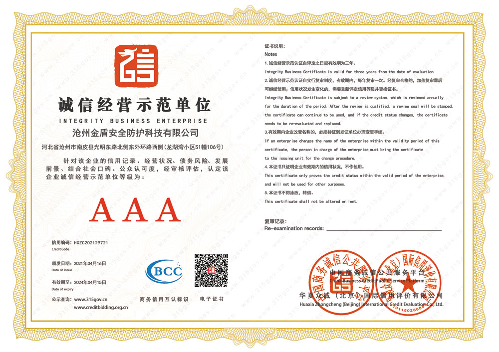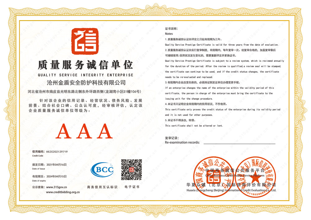 滄州金盾安全防護(hù)科技有限公司 電話:0317-8616698 郵箱:2277468668@qq.com 全國(guó)服務(wù)熱線:400-888-7543 地址:河北省滄州市南皮縣城市國(guó)際